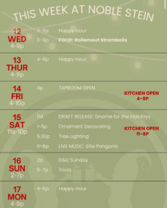 Happy Hour Specials – Because the only thing better than Noble Stein beer is Noble Stein beer at a discount! Check out our happy hour deals and sip your favorites for less.